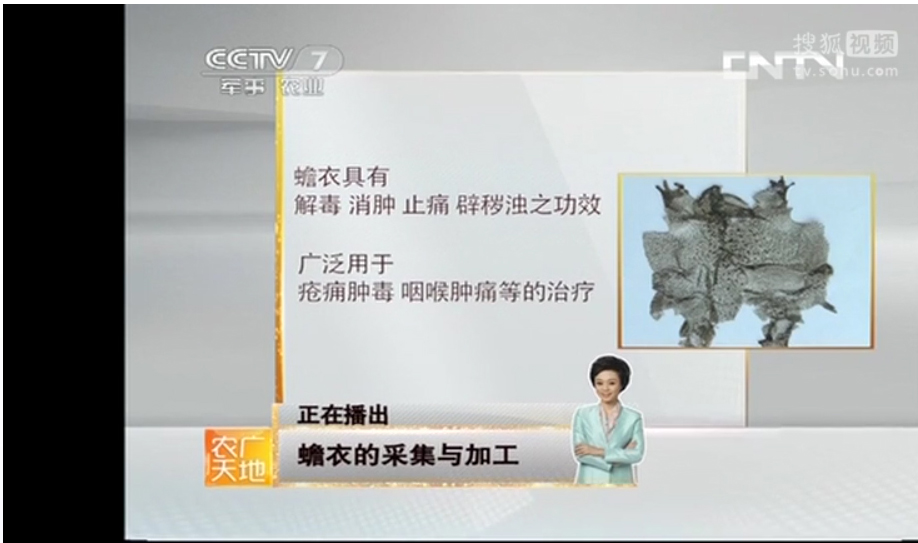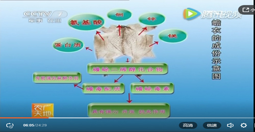 央視CCTV7農業(yè)頻道對蟾衣的肯定